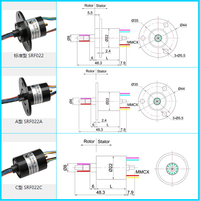 SRF022系列高清滑環(huán)掌握設(shè)計及制造的關(guān)鍵技術(shù),擁有自主知識產(chǎn)權(quán);完全滿足360度無限制旋轉(zhuǎn)的高清圖像實時傳輸;完整的產(chǎn)品規(guī)格可滿足客戶的要求;超長的使用壽命,該滑環(huán)產(chǎn)品已獲得國家發(fā)明專利.