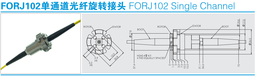 FORJ102單通道光纖滑環(huán)用于單?;蚨嗄O到y(tǒng)的光電旋轉連接;完全的雙向旋轉;與現(xiàn)有的電氣滑環(huán)設計相融合;全封閉結構;能為客戶量身定制所需要的光纖滑環(huán)